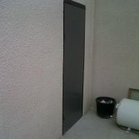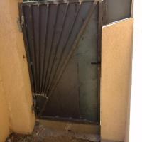 Portillon extérieur en tôle. Il a été orné du côté intérieur d'un soleil en fer plein.
