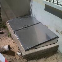 Voici une trappe donnant accès à une cave. Elle est réalisée en tôle galvanisée.